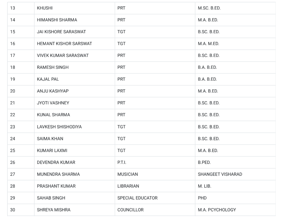 Total No. of Teachers - 30 (PGT: 0, TGT: 14, PRT: 15)